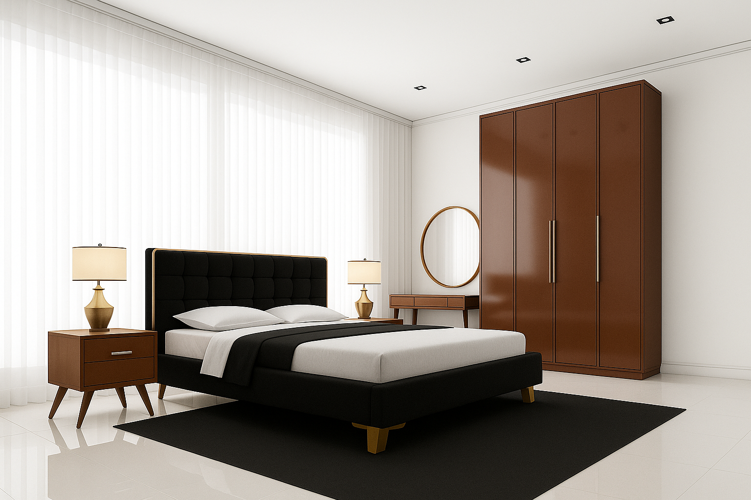 ✅ Spacious Storage: Almirah, dressing table, side tables, bed (optional) for all essentials and clothing.